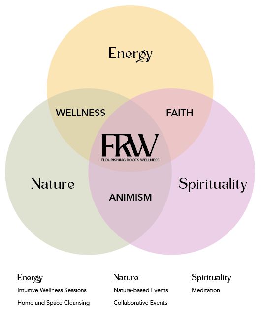 The foundation of what Flourishing Roots Wellness does is rooted in the three pillars: Nature, Energy and Spirituality. This is how we determine what offerings and services are in alignment with our Mission. This is a living document and will shift as needed with current states of being.